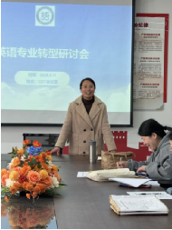 随后,全体教师结合自身教学实践,各抒己见、建言献策,就转型过程中的课程设置优化、实践教学体系搭建、师资队伍建设、校企合作深化等关键问题进行了热烈讨论。大家一致认为,英语专业转型要立足学校办学定位和专业特色,保留语言文学核心优势,同时融入跨境电商、国际商务、跨文化传播等应用型方向内容,构建层次分明、特色鲜明的课程体系;要强化实践教学环节,增加实习实训、项目式学习等教学模块,提升学生的综合应用能力和就业竞争力;最后,英语专业教研室主任成敏对会议进行了总结升华,表示将按照计划加强师资队伍建设,鼓励教师开展跨学科学习和行业实践,打造一支兼具语言教学能力和专业实践能力的复合型师资队伍。