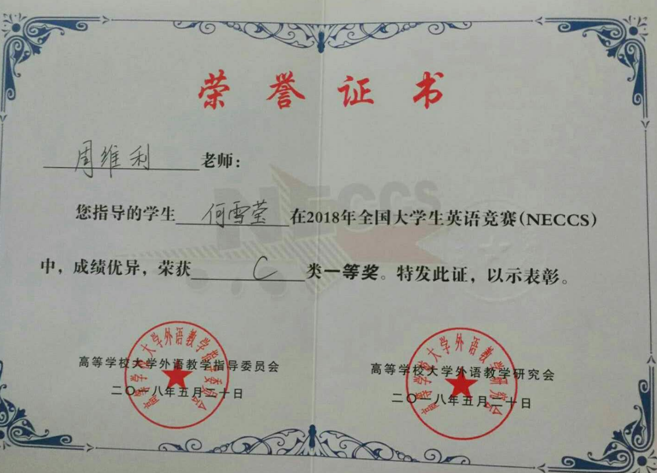 根据2018年全国大学生英语竞赛的通知章程及大赛湖南省组委会的通知要求,我院外语系组织主办了本次大赛的校级初赛。共有538名学生报名参赛,其中B类英语专业247名学生,C类非英语专业291名学生。竞赛于4月15日上午9-11点在一教学楼进行。比赛共决出了二三等奖共44人。并有三名学生代表学院参加了5月份在湖南大学举行的湖南赛区的复赛,分别为孙纪燕老师指导的2015级学生颜梦莎,周维利老师指导的2016级学生何雪莹和蒋实老师指导的2016级学生陈希妍。三人分别获得省级复赛一等奖。