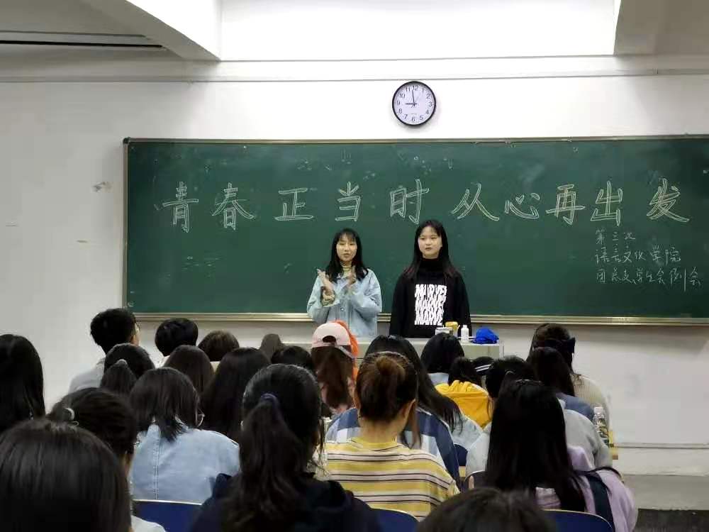 会议中,学生会主席黄雨简单交代了近期文院的工作,随后副书记胡晓雨强调了语言文化学院中团总支与学生会的区别以及两者的附属部门,进一步增进了大家对文院的了解与认识。综合办公室主任包杰就请假问题在台上做了再一次强调,希望大家牢记于心!