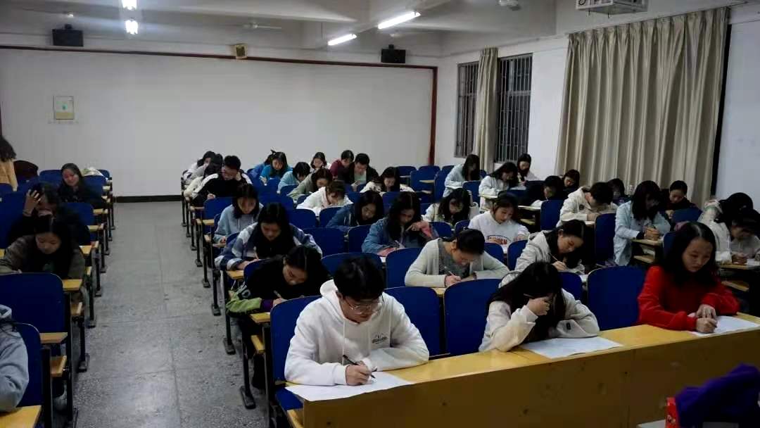 各位同学早早到场按座次表依次入座,开考铃一响,同学们奋笔疾书,都想成为语言文化学院的主力军中的一员,与其他兄弟院校进行最终对决,不仅是为自己证明,更是为给学院争光!