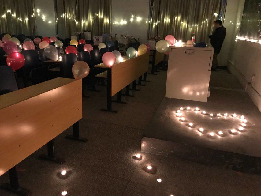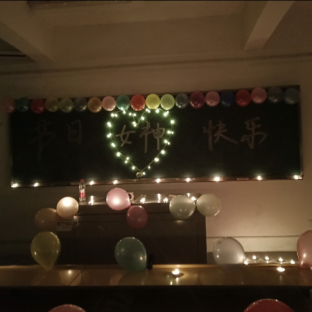在2018年的最后一个月里,我们迎来了涉外的18级第一个女生节,外国语学院学生会抓住这个势头在开例会的时候给了我们一个难忘的回忆。一进门就看到走道上铺设的爱心蜡烛,墙上挂的暖黄色彩灯,黑板上"女神"二字心形围绕,座位上都摆放着气球和蜡烛,到处弥漫着浪漫的气息,幸福感爆棚,but 唯一想吐槽的就是我们的BGM…也太不浪漫了吧…