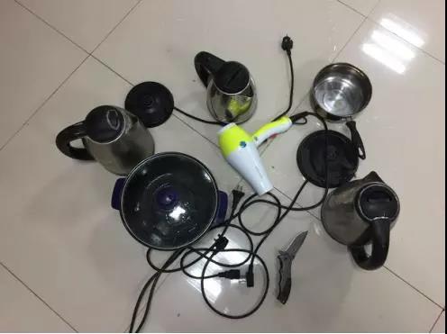 如:电炉、电锅、电热杯、热得快、电热褥、取暖器、电烫斗等电热器具。