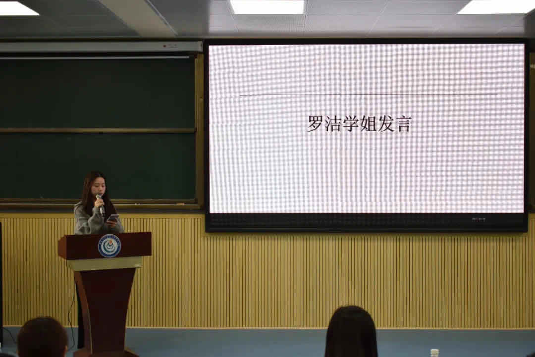 第二位发言的是罗洁学姐,现就读于中南林业科技大学。学姐就以往咨询者的难点从考试科目、推荐书目和准备过程三个方面做了一个较为全面的分享。学姐说,学会回顾、及时总结是一切学习方法中的重中之重,同时也希望大家能沉得住气,因为坚持得越久,对手也就越少。