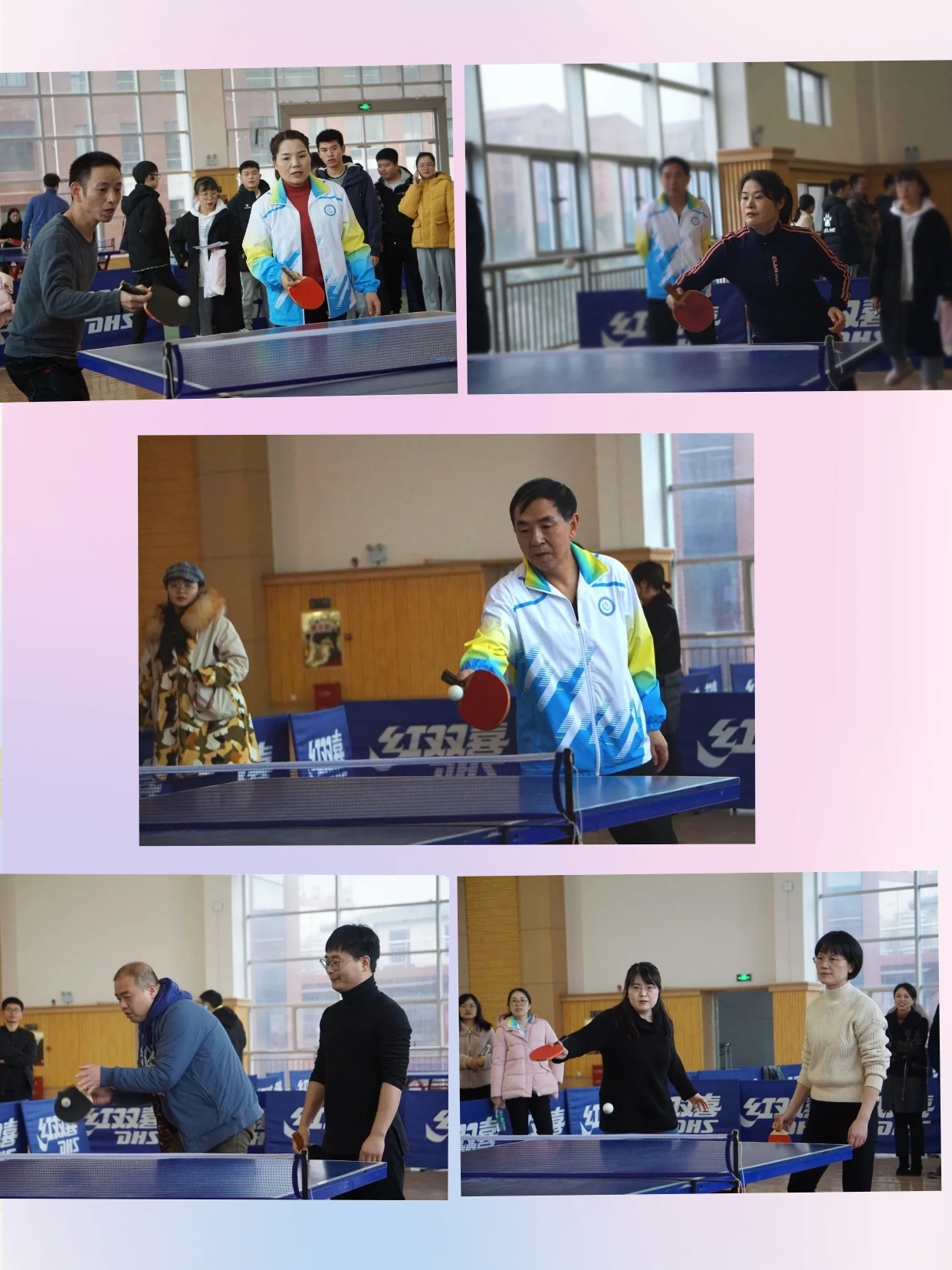在比赛过程中,教职工一个个精神抖擞,不愧都是久经沙场的老将,只见银色小球左攻右击,刚挡回去,又飞回来,说时迟那时快,几乎就在球刚出手的瞬间,它又飞回来了......