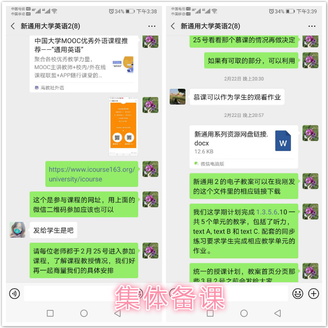 读写课程是大学英语课程中学生人数最多,教师参与人数最多的课程。教学小组提前两周就积极商量网课教学安排,组织集体备课。针对我院学生的学情,结合中国大学慕课网上相应课程的慕课,思考制定统一的教学方案。