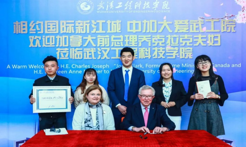 2018年4月18日,我院彭予双老师和学生代表孙丝雨、邓楠、王舒楚、黎锦松等应邀前往参加加拿大第16任总理H.E.Charles Joseph “Joe” Clark(乔·克拉克)和其夫人H.E. Maureen Anne McTeer(莫林·麦克蒂尔)的访问交流活动。