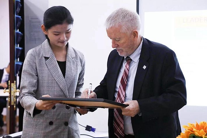 艾伦•卡洪博士的到访,进一步推进了学院教育国际化进程,为学院不断探索创新注入了强劲动力。我院在国际化教学方面,高度重视国际交流与合作,拓展创新国际化办学思路,先后开展了“微留学”、“本硕直通”项目。未来,中南林涉外学院将继续坚持”高端化,国际化,个性化“的办学道路,为学生提供更多优质教育资源,致力于培养世界青年领袖,助力培育全球化优秀人才,让中南林涉外学子牵手世界名校,成就自己。