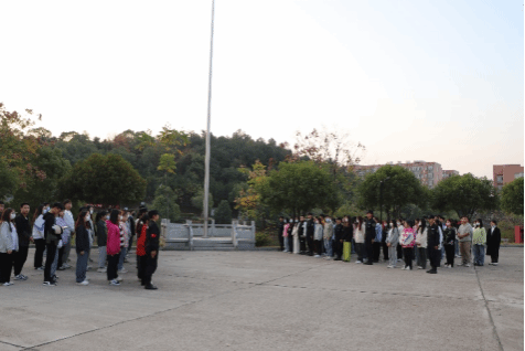 主席团成员进行发言,所有学生干部于一教前坪进行了升旗仪式,现场氛围庄严肃穆