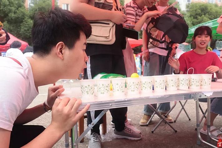 游园会各个协会都富有创造力,他们将社团文化融于游戏之中,产生了令人惊喜的化学效应。楚源汉服社精美的汉服,有趣的投壶、下棋吸引着许多人驻足,花卉协会的猜花名,数学爱好者协会的“二十四点”,军事拓展训练营的“水中捞月”等等各大社团新意层出不穷。让同学们目不暇接。
