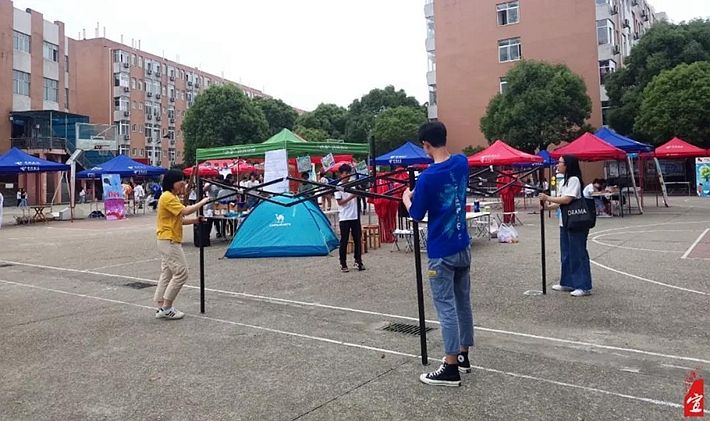5月29日,我院第二届学生社团文化节“游园会”于食堂前坪篮球场正式开幕!校园各个角落不约而同的出现了一群搬抬桌椅,肩扛帐篷的人。他们大都穿着图案不一的衣服,匆忙的脚步都暗示了他们的身份——社团人。