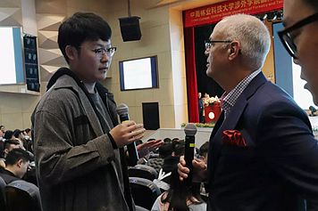 虽然院领导、师生们与迪恩・福廷先生相聚时间有限,但福廷先生对涉外学院的评价非常之高,在演讲现场与同学们交流后,他认真表示我院有一批优秀的学生,他相信涉外学子终有一日会在这个世界上发出耀眼的光芒!