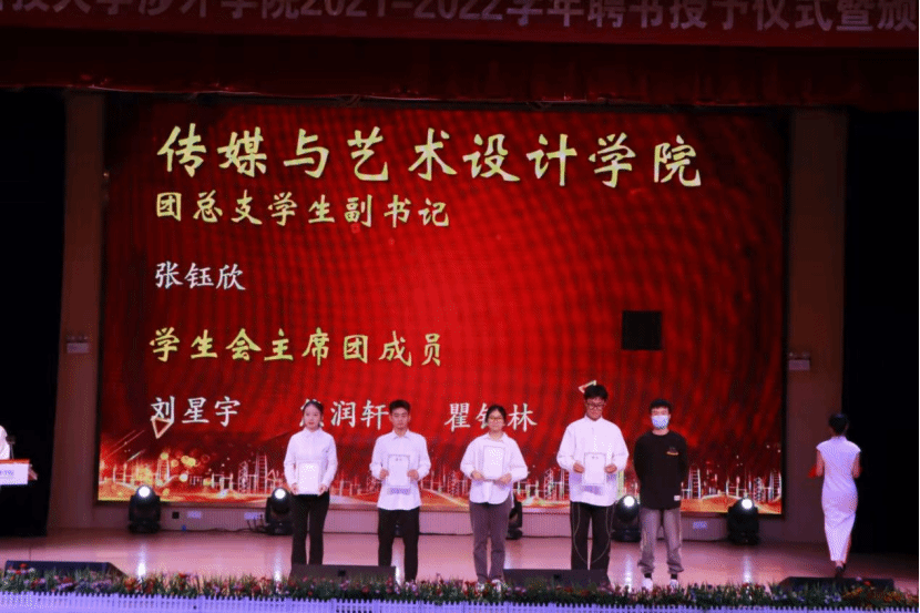 在学术报告厅举2021-2022学年团委、学生会学生干部聘书授予仪式