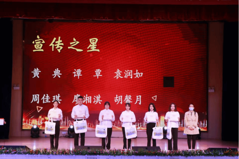 团委指导老师粟晓露、学工处副处长甘叶青、团委书记齐程程分别为文艺之星、宣传之星、服务之星、最佳学习奖、最佳领导力奖、最佳组织奖、最佳表现奖颁发奖品与荣誉证书