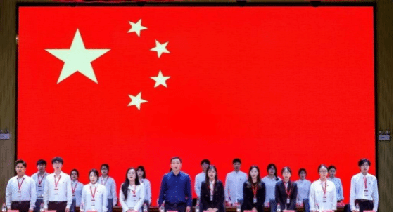 伴随着音乐的响起,全体人员起立,奏唱《中华人民共和国国歌》