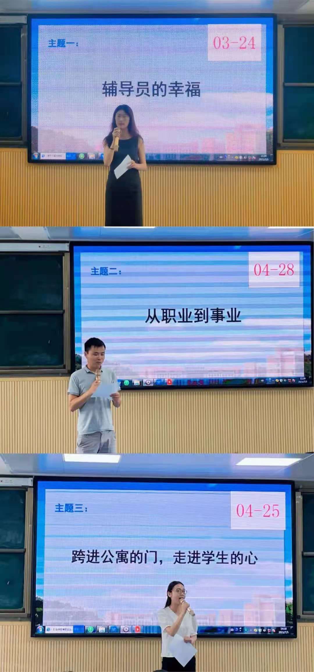 本次大赛分为笔试、面试、经验分享三个环节。其中,笔试包含辅导员岗位知识测试、应用文写作和案例分析;面试分为主题演讲和谈心谈话两个部分,综合考察辅导员的语言表达能力、活动组织策划及实施能力、思想教育和心理辅导能力、日常事务处理能力等多方面的知识和技能,全方位地展现了辅导员的个人素养、知识储备和专业技能。