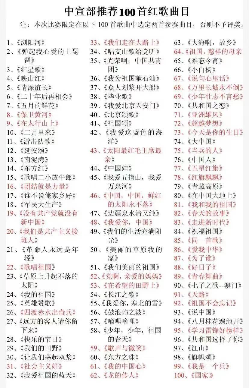 1.演唱作品须为中宣部确定的100首革命歌曲曲目;