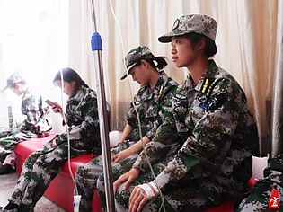 后勤司务王梦菲谈到:“其实我前几天就出现了身体问题,肠胃炎一直反反复复,但因为带训没有及时看病,导致现在更加严重只能到医务室休息了。我身边很多带训教官都出现了大大小小的身体问题,如果不是身体实在不允许了,我现在也将和他们一样坚守在自己的后勤岗位上。”