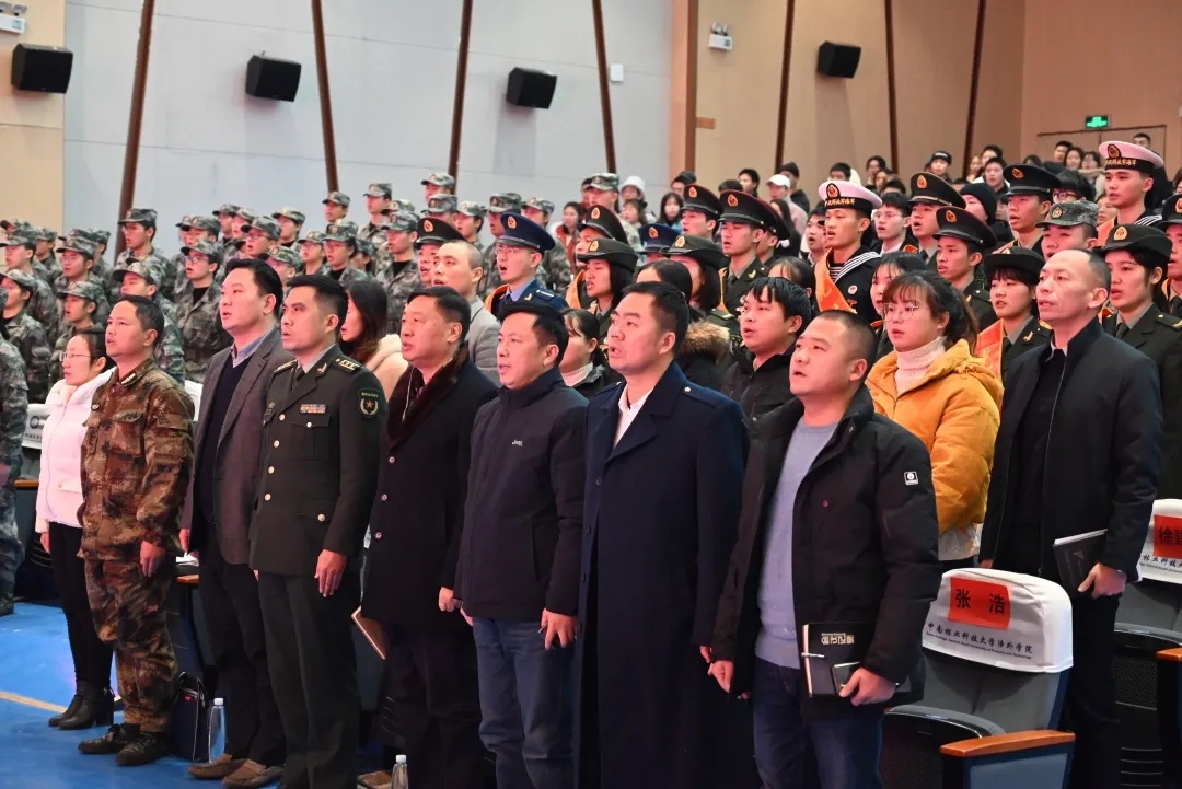 为积极响应党中央、国务院、中央军委推动军队改革、提高兵员素质、优化部队结构、加强国防现代化建设的重大战略决策,积极营造爱国参军的良好校园氛围,鼓励更多优秀大学生到部队建功立业。12月17日下午,我院在学术报告厅隆重举行退役大学生士兵欢迎仪式暨2021年征兵动员大会。望城区人武部政委文楚强上校、人武部参谋陈兵,丁字湾街道武装部副部长张浩,学院领导朱定强、孟志波、叶国安、刘诗福,40名退役大学生士兵及学院老师、部分学生代表出席了本次大会。大会由后勤处副处长杨国梁主持。