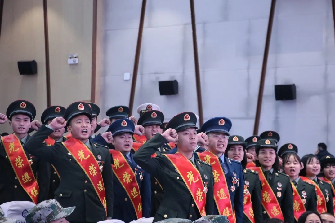 全体退役大学生士兵进行宣誓,“若有战,召必回”,这是多么庄严的承诺,这不仅是是每一位退役士兵的肺腑之言,更是军人永恒的信念!