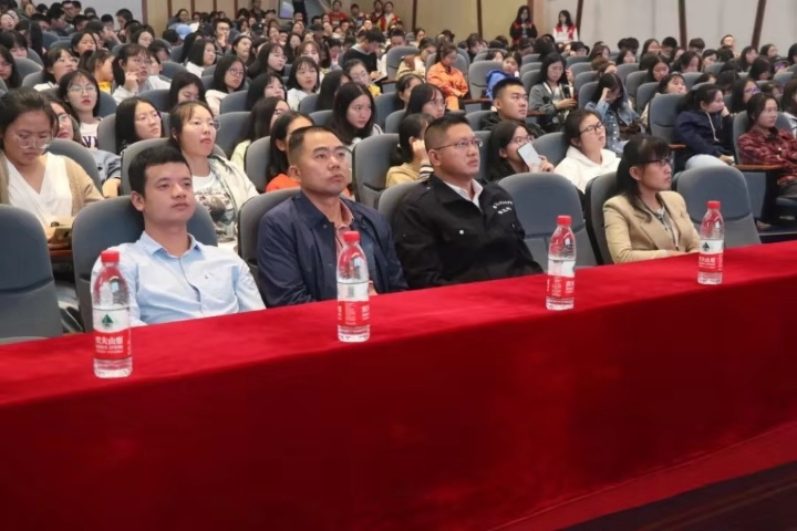 讲座由长沙市青彩防艾志愿者服务中心主任,长沙市学校健康教育志愿服务总队负责人向小寒老师主讲。学工处处长刘诗福、保卫处处长刘飞跃、后勤处膳食管理主管朱一村、学工处综合办公室甘叶青老师应邀出席本次讲座,讲座吸引了我院2800余名新生到场参加。