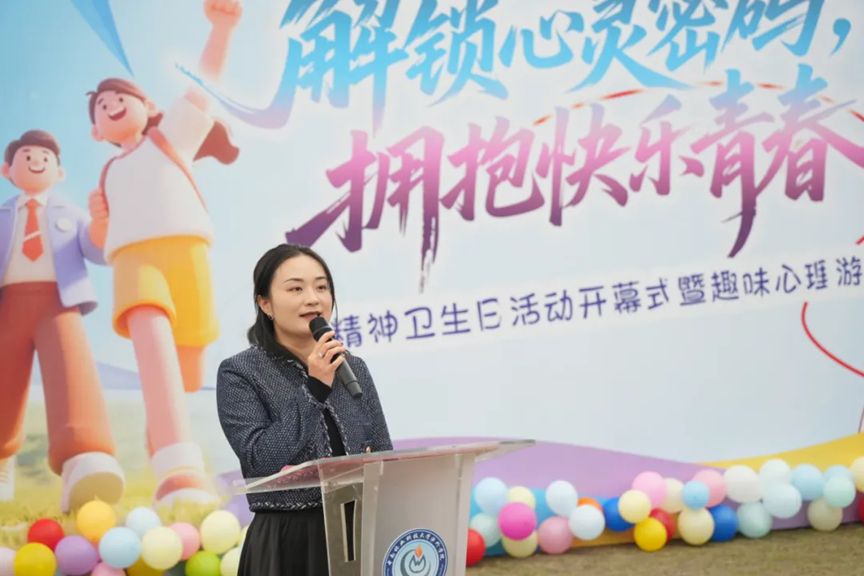 学生工作处副处长范伶俐在开幕式致辞中指出,心理健康是青年成长成才的基石,更是我们每一个人应当珍视的宝贵财富。她对同学们提出三点希望:一是心理健康与身体健康同等重要,要正视情绪变化,学会自我关怀;二是要勇于打破心理污名,觉察并表达自己的情绪;三是增强心理韧性,在交流中收获心灵成长。她表示,学院始终将心理健康教育作为立德树人的重要环节,通过完善课程体系、拓展实践平台、强化队伍建设为学子健康成长保驾护航。未来,学院将继续创新心理健康教育模式,筑牢心理防线,助力学生书写青春华章。最后,她祝愿每一位同学都能在阳光下茁壮成长,在风雨中依然坚韧