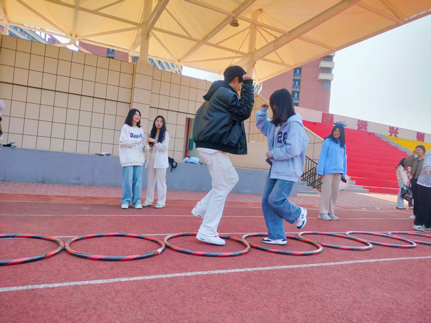 活动伊始,热场游戏“松鼠与大树”迅速点燃了现场气氛。未能成功组队的成员通过自我介绍,分享了作为心育委员帮助他人的暖心经历,通过才艺表演拉近了彼此距离。随后,团队合作环节精彩纷呈:“呼啦圈传递”考验了团队的默契与配合,稍慢的队伍集体完成呼啦圈跳绳,现场笑声不断;“逃脱困境”中,率先完成任务的小组成员积极分享心情调节的方法,将温暖与正能量传递给身边人;“狭路相逢”更是将活动推向高潮,失利队伍手拉手向获胜队伍送上真诚赞美,展现了团队的友爱与包容。活动尾声,全体成员以“爱的抱抱”传递温暖,并共同创意摆拍,留下充满纪念意义的团队合照