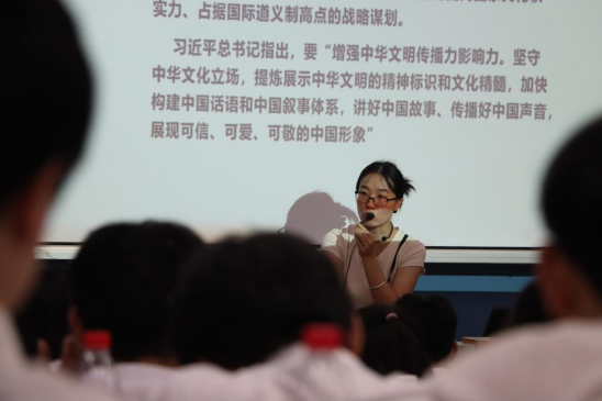 马克思主义学院的赵杰老师为同学们带来了主题为习近平文化思想的精彩讲课。赵老师详细讲解了习近平总书记关于文化建设的重要论述,强调了文化在增强国家凝聚力、促进社会和谐中的关键作用。新时代的文化建设要体现以人民为中心的发展思想,关注人民群众的文化需求,提升全民族的文化素养。最后,赵老师耐心解答了同学们的问题,并鼓励大家在今后的学习和生活中将习近平文化思想融入实际