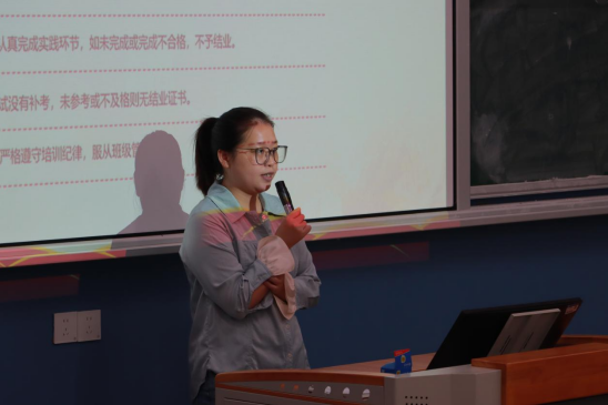 开班仪式上,信息与工程学院学生第二党支部书记陈媛老师致欢迎辞。她指出,作为新时代的党员,同学们不仅要提升自身素质,更要在实践中锤炼意志,发挥先锋模范作用。