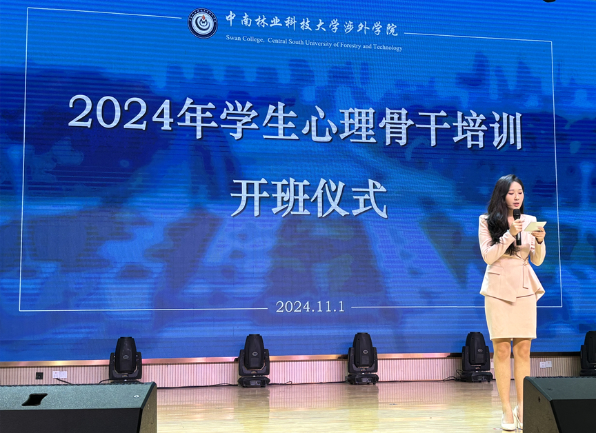 为进一步加强我校心理健康教育工作,增强学生心理骨干的心理健康知识和技能储备,提高工作胜任力,建立健全学生群体心理自助与互助模式,我校学工处心理中心于2024年11月1日中午在学术报告厅举行了“2024年学生心理骨干培训开班仪式”。此次培训开班仪式邀请了学工处负责人甘叶青、二级学院心理专干朱文英、张伊丽、荣婷婷,及心理中心王汪、郭飞、杨雅珺和鲁浩雯出席,2024级各班心育委员、学生心理团队成员及心理健康爱好者共同参训