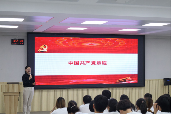 周新乐老师带领同学们学习了“中国共产党章程”,并简要介绍了“中国共产党纪律处分条例”“中国共产党廉洁自律准则”“中共中央八项规定”等相关文件。周老师强调认真学习党章,严格遵守党章,是全党同志应尽的义务和庄严的责任。最后,她谈到作为学生党员要做到:学党章、强党性、讲规矩、讲纪律!