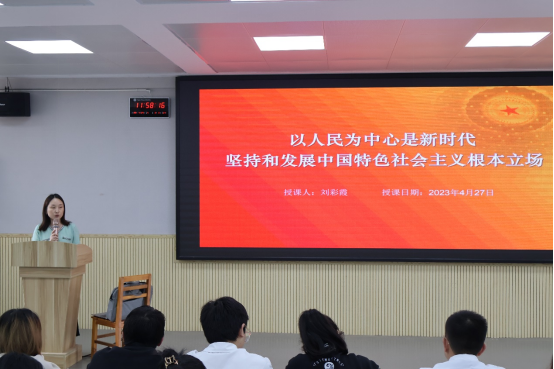 刘彩霞老师从“人民对美好生活的就是我们发展的奋斗目标”“我们要依靠人民创造历史伟业”“朝着全体人民共同富裕不断迈进”“把党的群众路线贯彻到治国理政全部活动中”等四个方面全面解读了“以人民为中心是新时代坚持和发展中国特色社会主义的根本立场”,并借用习近平总书记的话“中国共产党是全心全意为人民服务的政党,必须始终保持同人民群众的血肉联系”要求学员们在实际工作与生活中要为人民谋福利谋福祉,始终全心全意为人民服务,真心实意向人民学习,倾听人民呼声,虚心接受人民监督,服务人民。