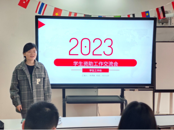 为提升辅导员队伍对学生资助工作的认识深度、工作扎实程度,更好更细致服务广大学生,4月28日上午,学工处在知行楼国际教室C组织开展学生资助工作交流会,2022、2023年新入职辅导员参加交流会,会议由学工处副处长任晟圣主持。