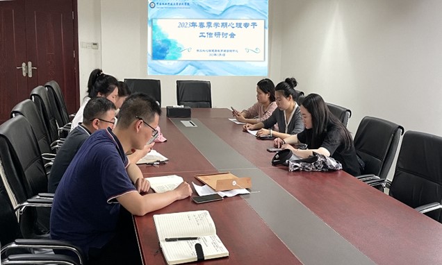会上,心理中心王汪老师通报了2023年春季学期全院心理普查工作任务推进情况,并重点就毕业生离校前心理健康教育工作做相关安排。同时,王汪老师介绍了本学期各项心理健康主题活动的计划,对重点活动如心理剧大赛、心理主题班会及5·25心理嘉年华等活动的安排与各位心理专干进行了深入交流,心理中心杨雅珺老师对相关内容细节进行了逐一说明。最后,心理中心主任刘宏程老师就我院心理健康教育工作的开展现状及重点关注情况进行了强调,指出要加强对大学生群体心理动态的实时关注,健全学生个体心理档案,尤其要加强对一级心理危机预警学生和毕业生群体的关注和帮扶工作,切实做好学生心理健康教育工作。