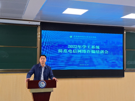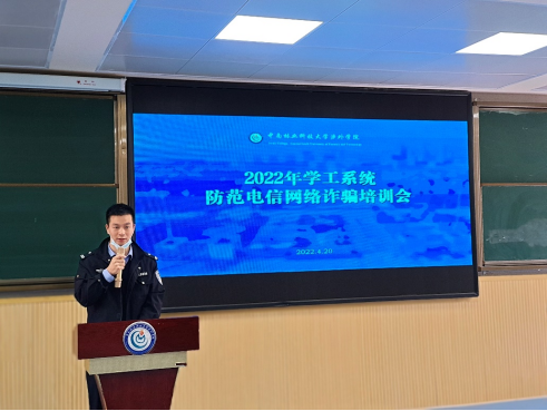 随后,院长助理刘诗福代表学校提出了三点感谢,感谢派出所对学校工作的关心与支持;感谢黄刚副所长、余灿文警官对培训工作的认真准备与细致讲授;感谢学工系统的全体人员在校园安全工作中所作的贡献,得到了当地政府和当地公安机关的肯定。刘诗福院助指出校园安全工作,特别是防范电信网络诈骗工作,事关学生的生命安全、事关人才培养质量、事关家庭幸福指数、事关学校、社会、国家的安全稳定,做好防范电信网络诈骗工作,维护校园安全,是全体思政辅导员一项重大政治任务。会议最后,刘诗福院助通过我校常见的诈骗案例讲解,进一步指出了电信诈骗的危害性、推广国家反诈中心APP的必要性,同时,他提出广大学生工作者要把防范电信诈骗教育常态化工作抓牢抓实,教育引导学生强化防范电信诈骗意识,切实维护自身权益。