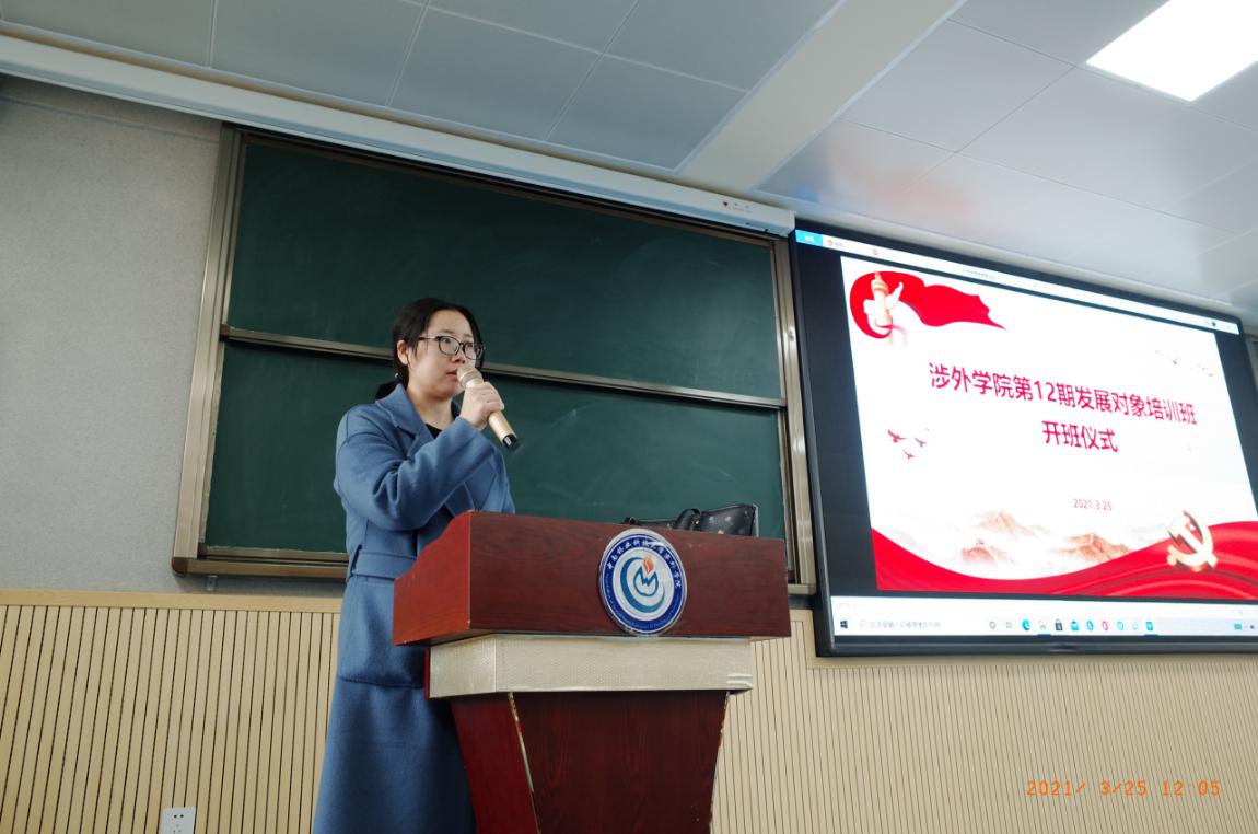 3月25日,涉外学院第十二期党员发展对象培训班开班仪式在1310教室举行。学生工作处副处长徐婷出席开班仪式,开班仪式由班主任钱梦婷老师主持。