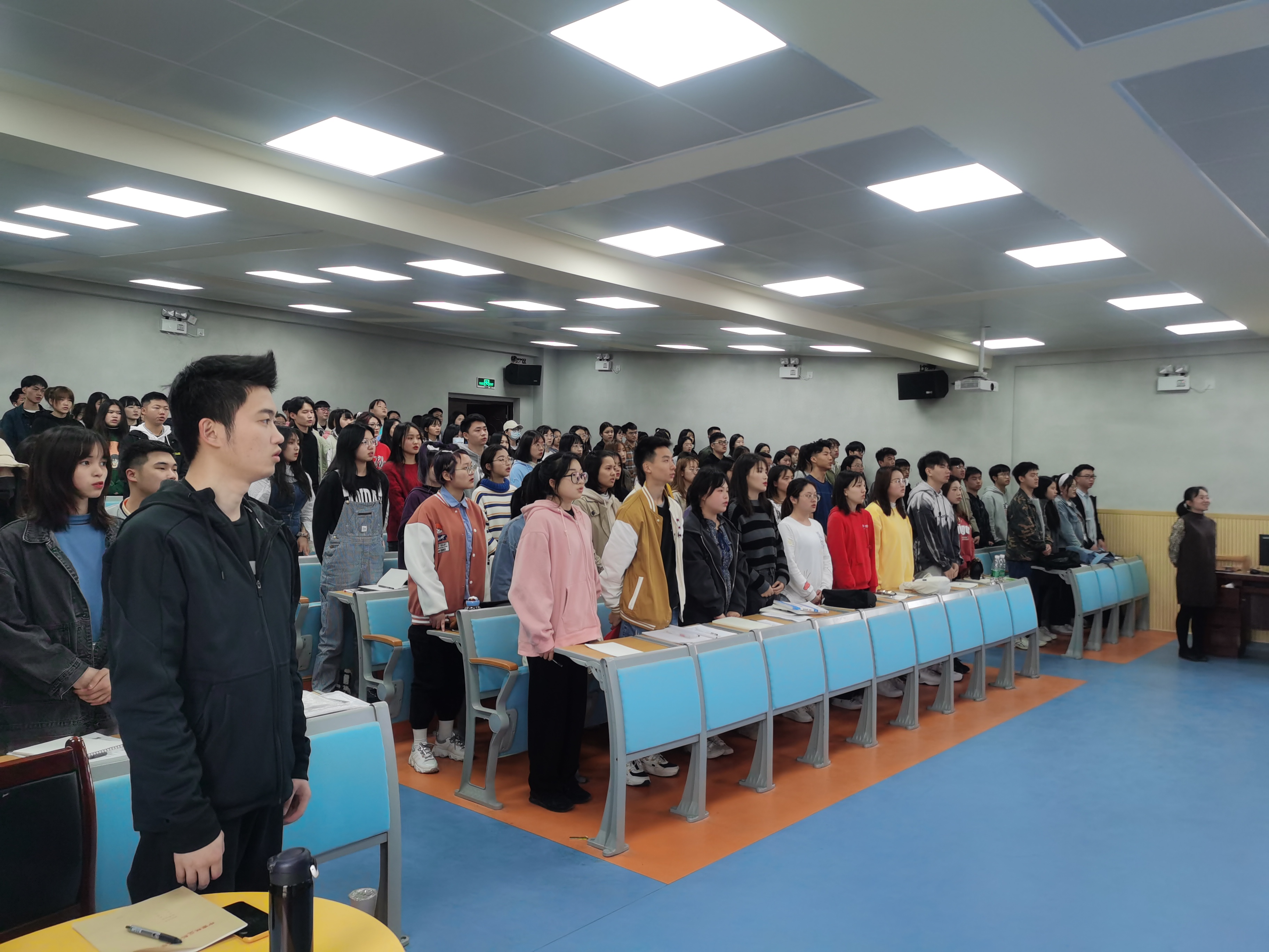 仪式开始,全体起立,奏唱中华人民共和国国歌。