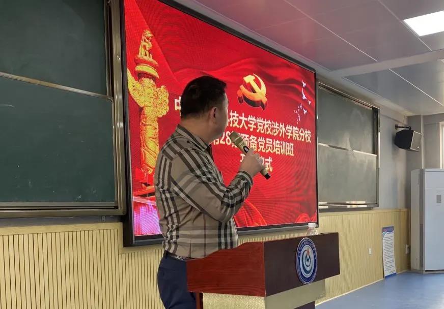 仪式第一项,班主任蒋文艳老师宣布中南林业科技大学党校涉外学院分校第28期预备党员培训班开班仪式正式开始。