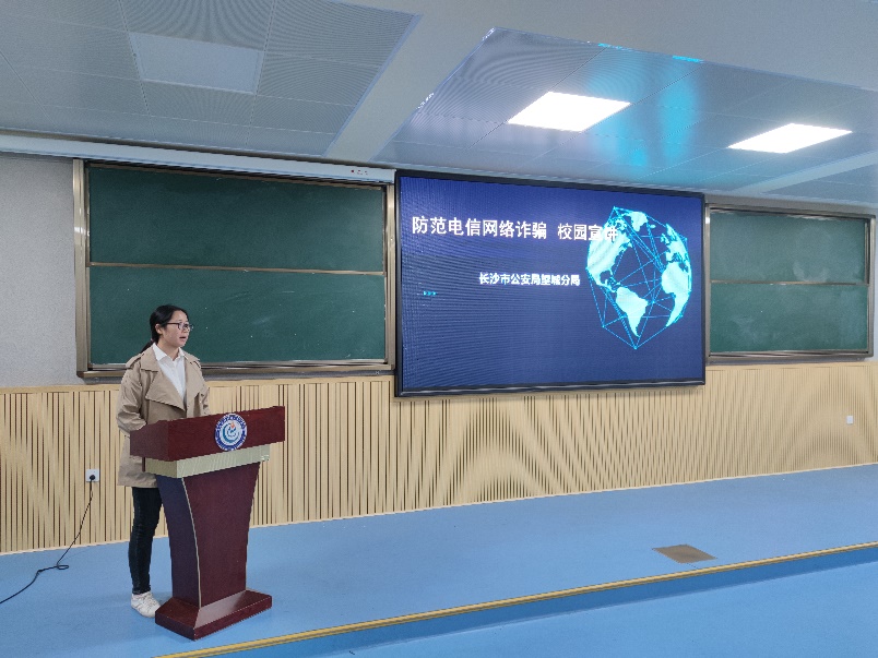 随后,丁字镇胡警官以我校学生被骗真实案例为切入点,从什么是电信网络诈骗、常见电信诈骗案发类型、如何防范电信网络诈骗三个方面进行系统宣讲培训。他强调,电信诈骗类型复杂多样,同学们要牢记“多分析、多咨询、不贪心、不乱入、不转账”防范电信网络诈骗五条原则,遇事要冷静,不要慌,有任何问题要及第一时间拨打报警电话。
