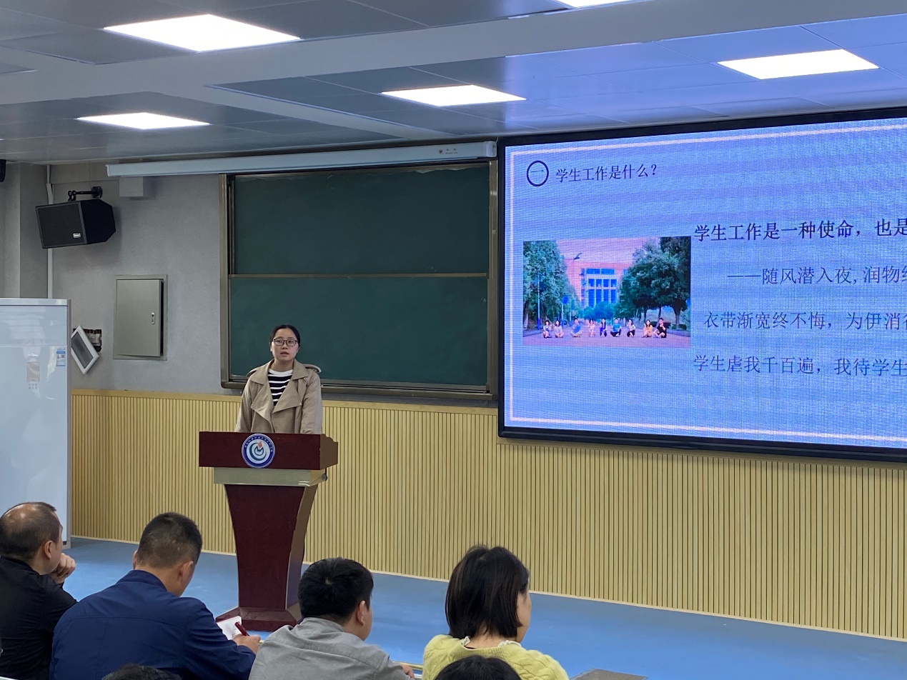 齐程程老师则以问题学生实际案例为切入口,从多看、多听、多想、多说四个方面,结合自身学生工作经验,详细分享了如何做好学生工作。她强调,要重点关注有心理问题、长期不在校、有学分问题的这三类学生,多用眼睛去发现问题,多用头脑去思考问题,多用耳朵去倾听问题,多用嘴巴去沟通问题,做好与学生、家长、任课老师、同事之间的联动工作,有效帮助学生解决学习、生活上遇到的各类问题,扎实提升学生工作实效。