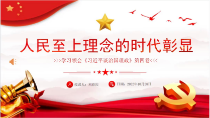 刘彩霞老师带领学员认真研读《习近平谈治国理政》第四卷,学习领会习近平总书记关于坚持人民至上的一系列重要论述。通过此次党课,学员们深刻意识到,人民至上是中国共产党治国理政最鲜明的价值理念,是我们做好一切工作的根本出发点。中国共产党为什么能?就是因为其根基在人民、血脉在人民。
