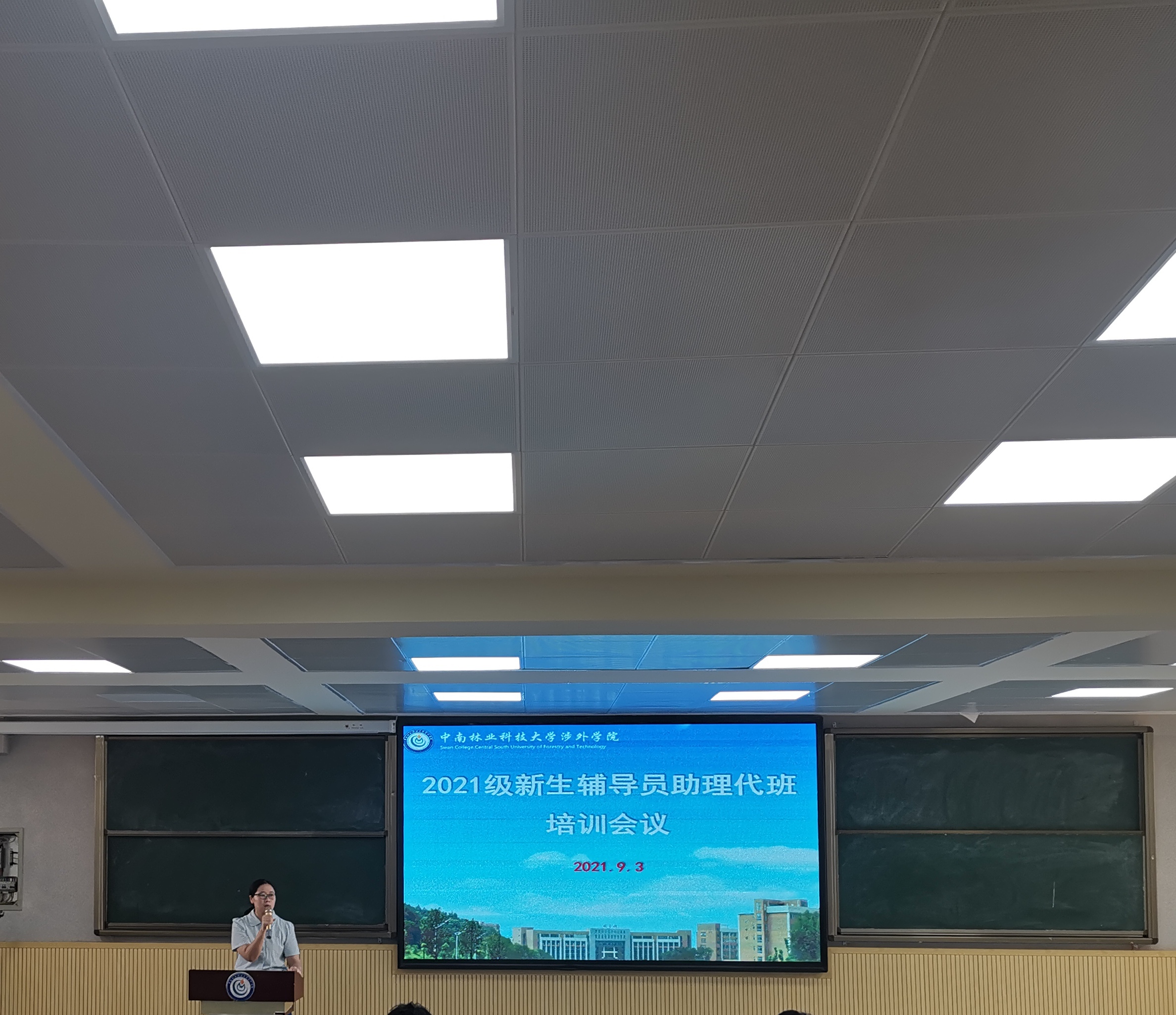 为提高2021级新生辅导员助理和代理班主任的行为规范和执行力,2021年9月3日上午,学工处组织全体新生辅导员助理和代班在一教学楼1310召开培训会。培训由学工处负责人徐婷主讲,全体2021级新生辅导员出席。