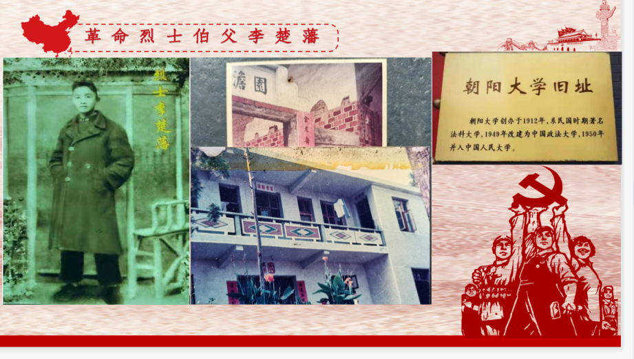 李老以朴实的话语,通过对100年前后的中国状况对比,生动讲述了百年来中国共产党带领全国人民如何将我们的国家从一个民不聊生的弱国蜕变成如今欣欣向荣的强国。李老带领全体学员重温“红船精神”,“长征精神”,“延安精神”,“井冈山精神”,“雷锋精神”,让大家对如何成为一个合格的党员有了一个全新的认识。李老还讲述了其伯父——革命烈士李楚藩和革命壮士李楚英,以及其父亲李楚琳的革命英雄事迹,叮嘱我们青年人要珍惜现在的美好生活,坚定崇高的理想信念,传承红色基因,赓续红色精神,学史明理,学史增信,为中华民族的伟大复兴而努力奋斗。