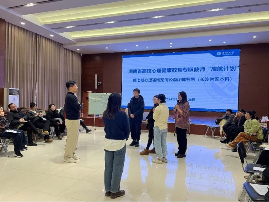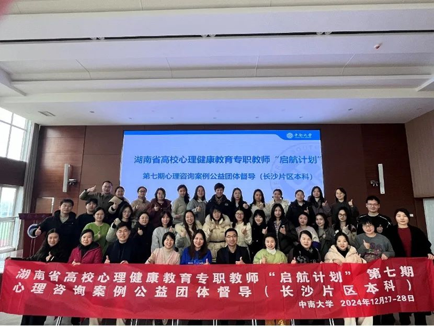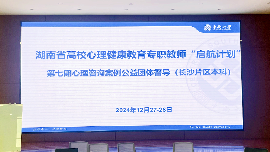 2024年12月27日至12月28日,湖南省高校公益心理咨询案例督导启航计划(第七期)长沙片区(本科组)地面督导于中南大学顺利开展,我校心理中心专职心理咨询师王汪、郭飞、杨雅珺、鲁浩雯和省内高校49位专职心理咨询师共同参加了本次督导。