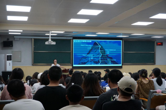 班会上,辅导员首先向同学们介绍了职业生涯规划是什么以及为什么要做职业生涯规划,接着针对同学们提交上来的职业生涯规划书,跟同学们一一分析其未来方向的可行性,并分享了优秀学长学姐的事例,引导同学们树立正确的人生目标,构建职业生涯规划模型。同时,也要求新生要从技能拓展、学业拓展、实践拓展等方面不断提升自己。