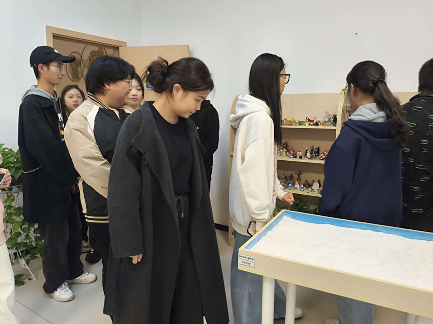 活动期间,心理中心各功能区域面向新生有序开放。在心理健康服务部与朋辈心理辅导团队的协同引导下,同学们依次参观和体验了情绪宣泄室、身心放松室、沙盘游戏区、心理测评区等功能空间,系统了解了各区域的服务内容、心理咨询预约流程及服务时间安排。活动过程中,工作人员专业细致的讲解与同学们积极投入的体验形成了良好互动,有效提升了新生对心理健康服务的认知度和接纳度。