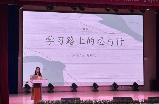黄利花同学以个人在学习路上的思与行为切入点,谈到在大二以前应以上好日常课程为重,养成积累和提问的习惯,多参加各类竞赛及科研项目,考取专业必备的技能证书,进入大三以后,则应尽早做好未来发展方向的规划,提前做好准备。同时,黄利花同学以个人考研备考经历为例,着重分享了个人在考研过程中的准备,包括院校专业的选择、学习时间的安排、教材教辅的选择等,并向同学们详细讲述了个人在日常学习生活中调整心态和坚持学习的方法,让在场的学子深受启发。