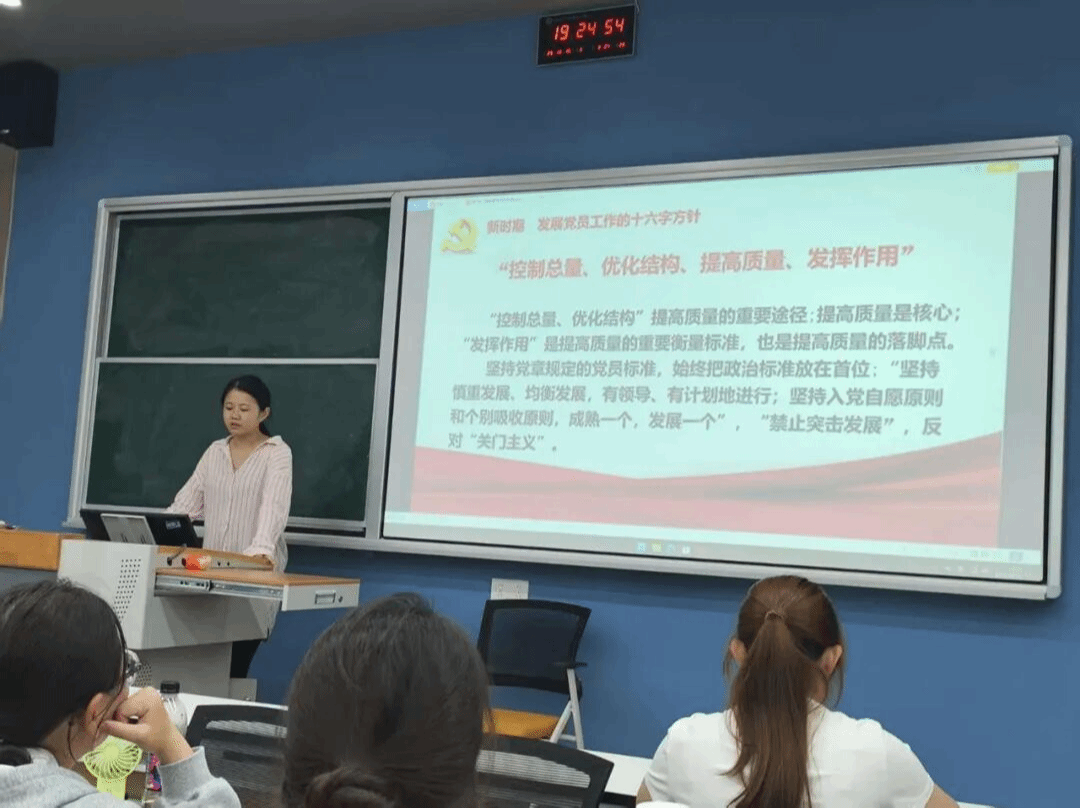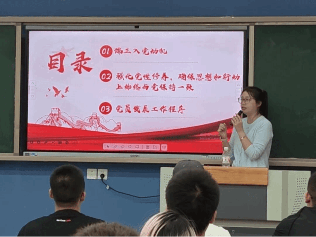 各支部书记以“筑牢思想根基”为核心,围绕“为何入党、为党何为”展开深度分享。他们结合高校党建工作实际与青年成长特点,强调新生需从入学之初便端正入党动机,将“党员标准”内化为日常言行的准则,在专业学习、志愿服务、集体生活中主动扩大人生格局。同时,书记们以“身边人讲身边事”的生动形式,鼓励新生以优秀教师党员的治学态度、学生党员的先锋事迹为榜样,从规范课堂纪律、参与班级建设等小事做起,逐步将个人的世界观、人生观、价值观与民族复兴伟业紧密结合,让青春理想在服务国家发展、人民需求的实践中落地生根。
