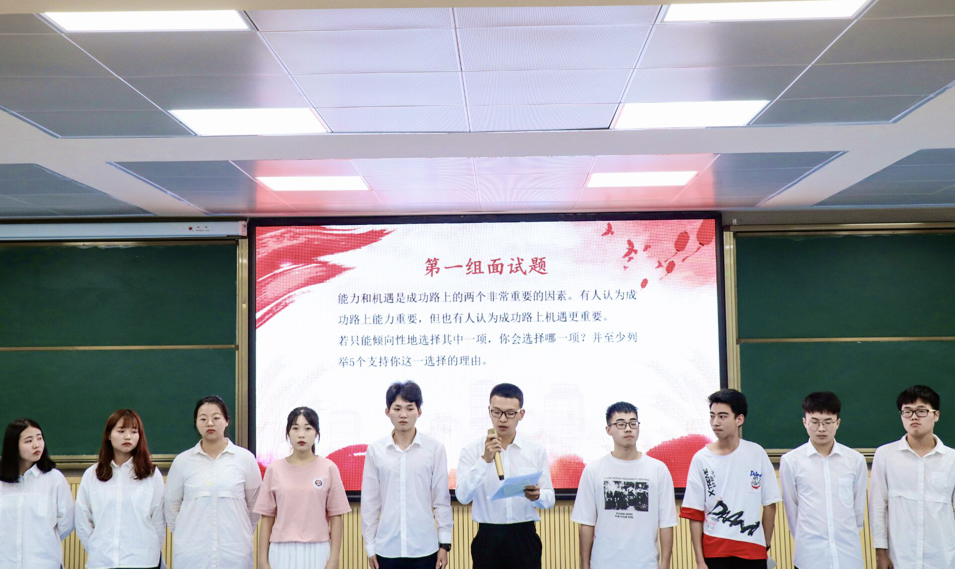 信息与工程学院双代会委员会选拔会的第一轮环节是候选人们依次上台,进行约三分钟的自我介绍。