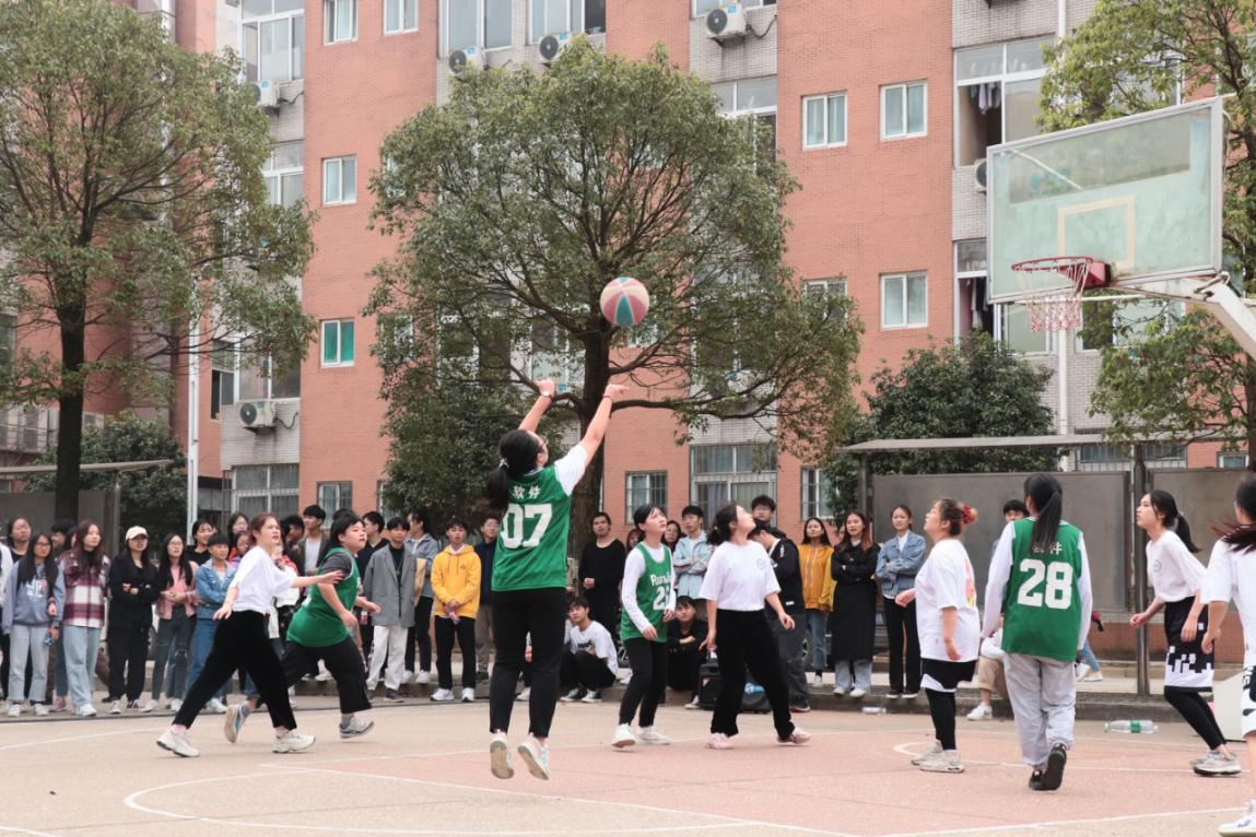 哨声吹响,随着篮球被高高抛起,整个球场瞬间充满紧张的气氛,每位球员的激情都淋漓尽致的体现在此刻的球场上,每个动作都彰显着青春的激情,展现了她们对篮球的热爱,对运动的热忱。参赛女球员们在赛场上充分发挥,抛洒汗水,展示自我。她们凭借着矫健的动作、默契的配合,给同学们带来了一场精彩的比赛。