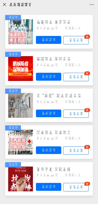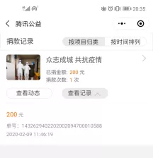 2017级物流二班学生,于疫情期间捐助5个水滴筹“接力共抗疫情”项目。